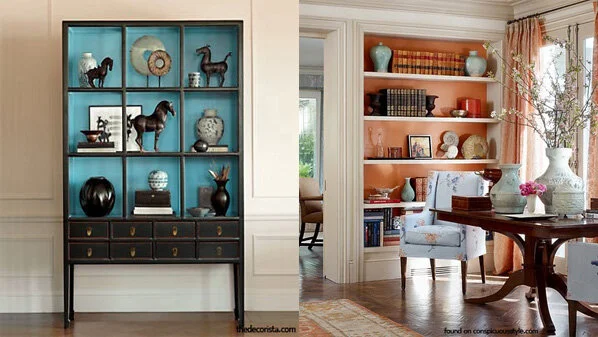 Are you’re beautiful display pieces getting lost on black or dark wood-stained bookshelves or hutches? You can help to show off your collectibles and even brighten up the entire room by painting the back of your shelves with a bright color. Or if you have a white built-in or free-standing bookcase, give the back of the shelves a pop of color and liven up your space. Choose a color that coordinates with other features in the room like your window treatments, a chair or some accent pillows. Paint is something you can always change easily if you want a new look in a few years. This is an easy DIY (Do it Yourself) project if you enjoy painting. Just be sure to tape off, and cover with paper, the parts of the shelves that you aren’t painting to protect them. If you like the look but aren’t into doing it yourself, hire a handyman to do it for you.